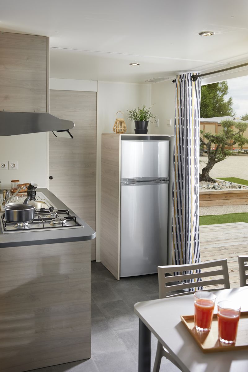 Sleeping area: One bedroom with 1 double bed (160*190), one bedroom with 2 single beds (80*190), pillows and blankets provided.