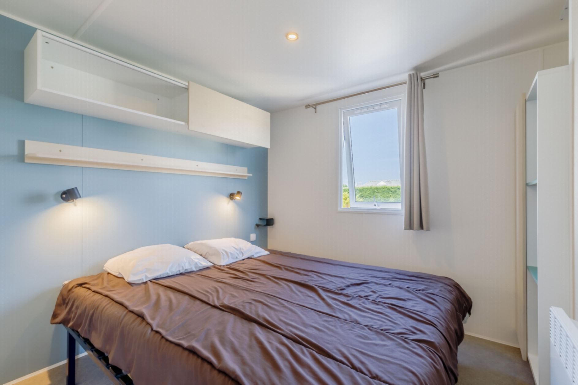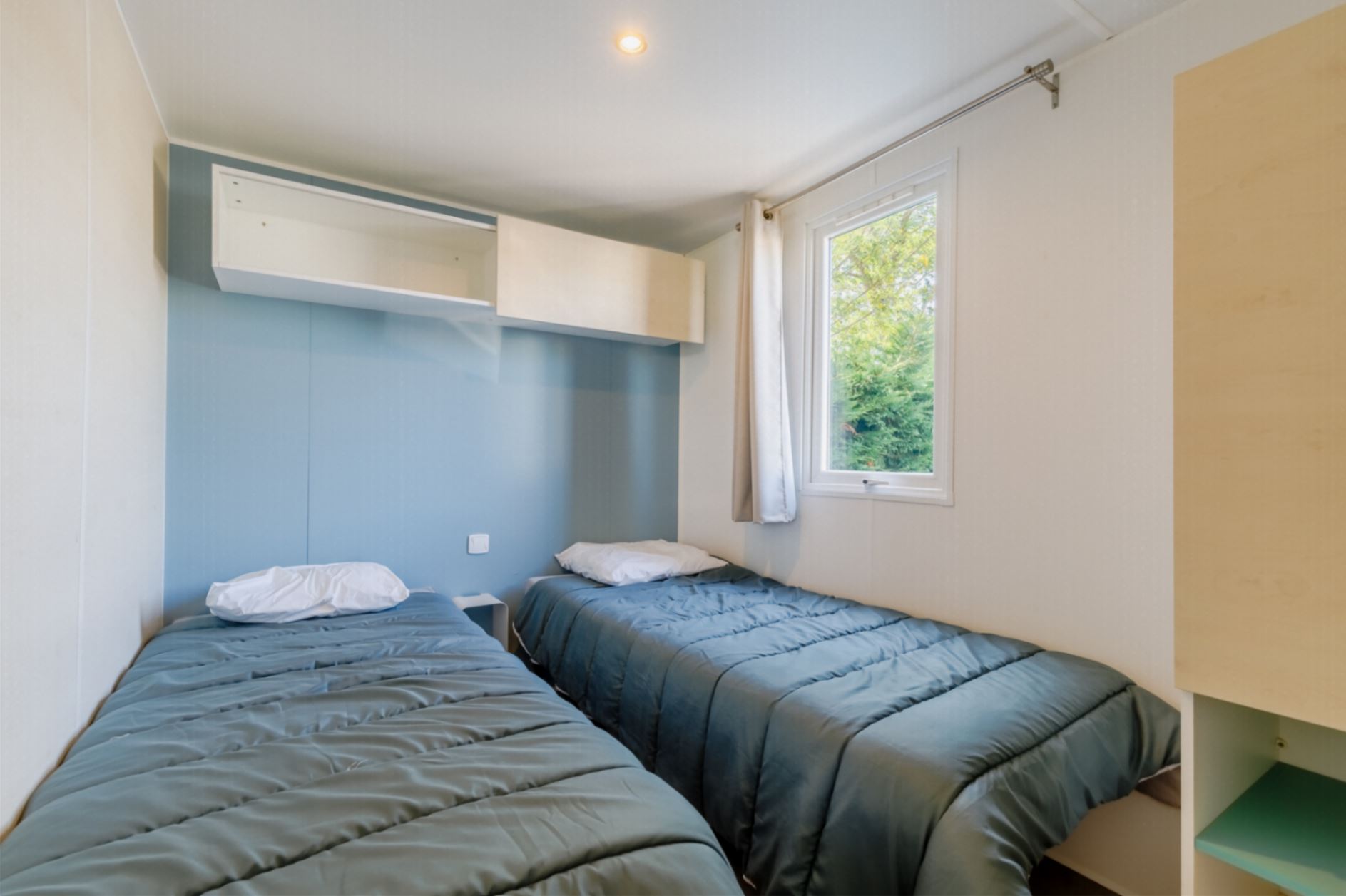 Sleeping area: one bedroom with 1 double bed (160×190), one bedroom with 2 single beds (80×190), pillows and blankets provided.